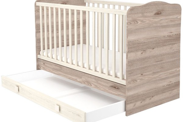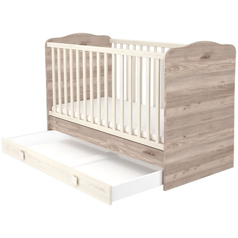Patut copii transformabil din lemn cu sertar Sofia 140x70 cm crem nisip