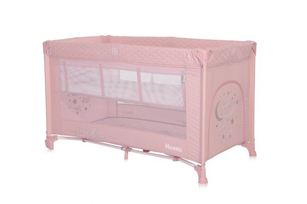 Patut Lorelli Noemi Mellow Rose Star pliabil, cu 2 nivele, laterala cu fermoar, roti cu sistem de blocare, salteluta si geanta de transport incluse