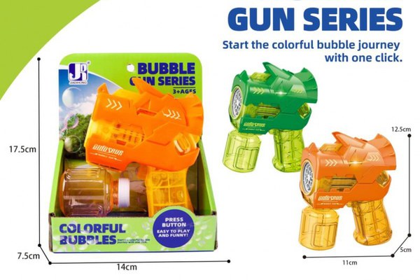 Jucarie pentru baloane de sapun, cu lumina.Contine un flacon cu lichid.Potrivita pentru fete si baieti peste 3 ani.nbspDimensiuni ambalaj 14 x 17 x 7 cmnbsp nbsp nbspAlimentare 3 x 1,5V AA baterii (nu