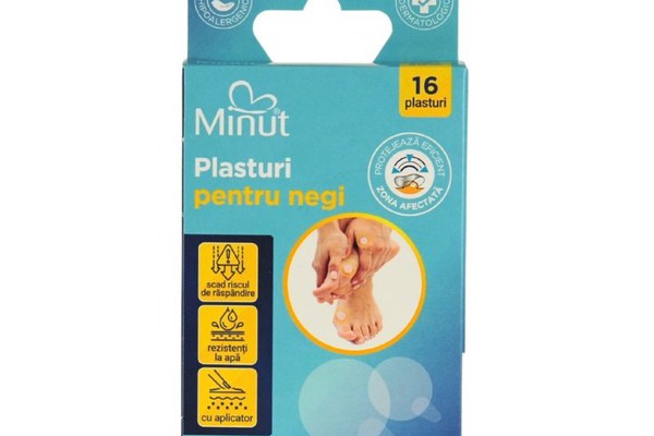 Plasturi pentru negi cu Acid Salicilic Minut, 16 buci, 2 dimensiuniPlasturii Minut reprezint o soluie eficient i practic pentru icircndeprtarea negilor (verugilor). Datorit formulei pe baz de acid sal