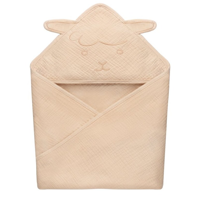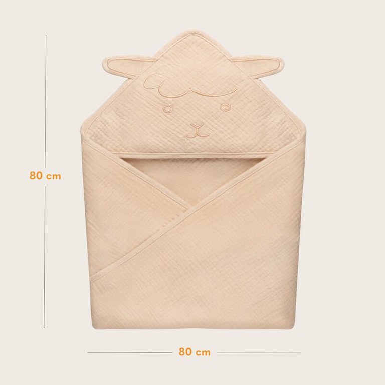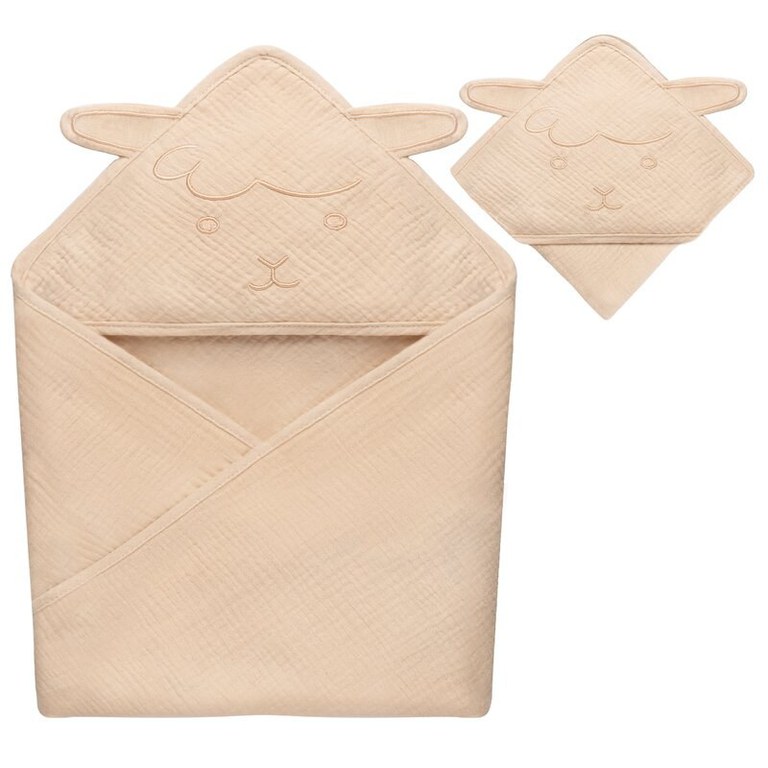 Prosop de baie Lionelo cu gluga din muselina 100 bumbac 80x80 cm bej deschis
