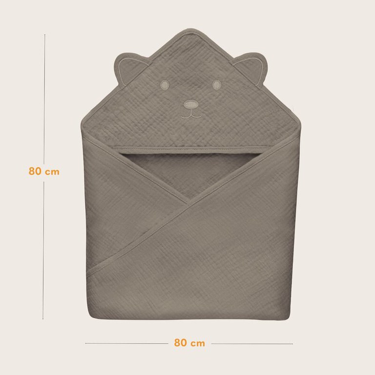 Prosop de baie Lionelo cu gluga din muselina 100 bumbac 80x80 cm bej inchis