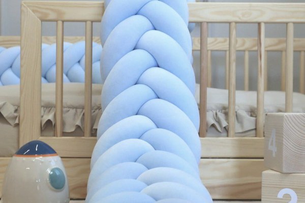 Protectie de pat impletita, MiniMini, Velvet Magic, Baby Blue, 350 cm