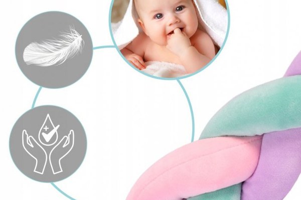 Protectie laterala impletita pentru patut Ricokids Trio RozMovTurcoaz 3metri,inaltime 11.5 cm, din plus cu umplutura antialergica