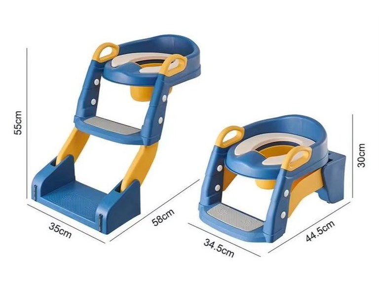 Reductor toaleta pentru copii Little Mom Blue, pliabil, ergonomic, sezut din PVC, manere de sustinere, vas colector detasabil, protectie anti-stropire, suprafata antiderapanta, 55 x 35 x 58 cm