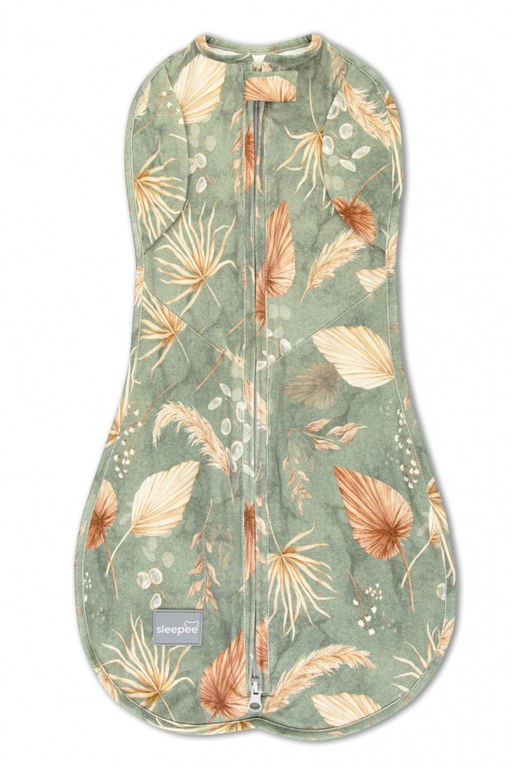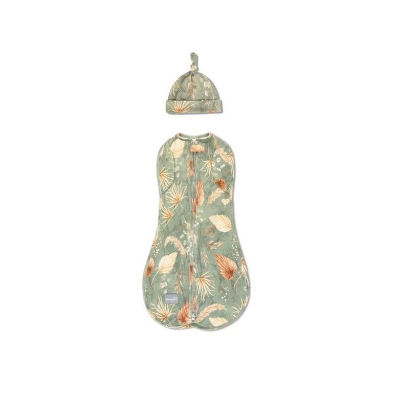 Saculet swaddle pentru infasat + caciulita Second Step Boho Green Sleepee