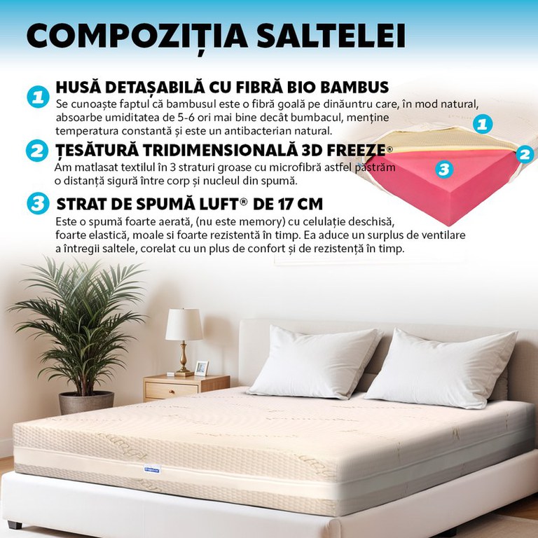 Saltea de pat Ortopedica Reversibila, Suport XXL, Bio Bambus Medical Strong, 200times200Daca studiezi ofertele din magazinele online de multa vreme si esti in cautarea unei saltele bune nici foarte in