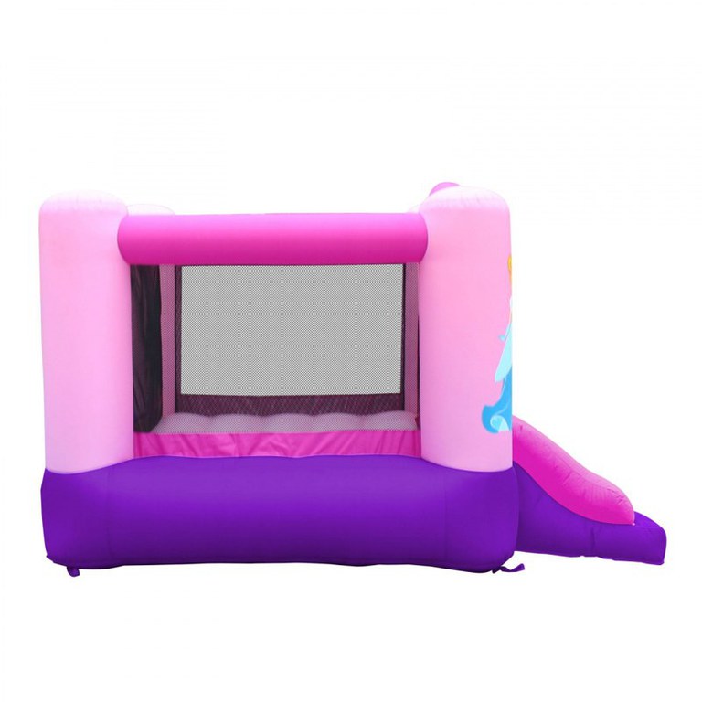 Saltea gonflabila Printese cu loc de joaca, tobogan si cos de baschet