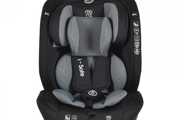 Scaun auto cu isofix Moni I-Safe Grey 76-150 cm,certificare i-size R129,centura ancorare top tether,tetiera reglabila 13 pozitii,husa detasabila,saltea reductor,pernuta gat si jucarie plus incluse