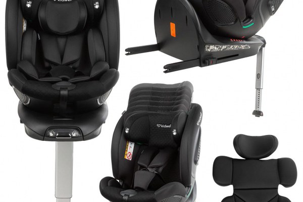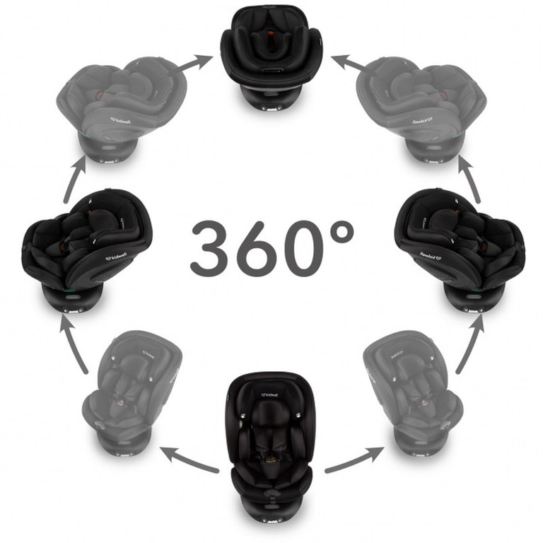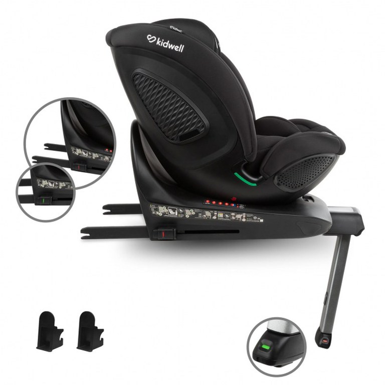 Scaun auto Kidwell GoCar Negru cu isofix, grupa 40-135 cm, i-Size, omologare R129, rotativ 360, protectie laterala ASP