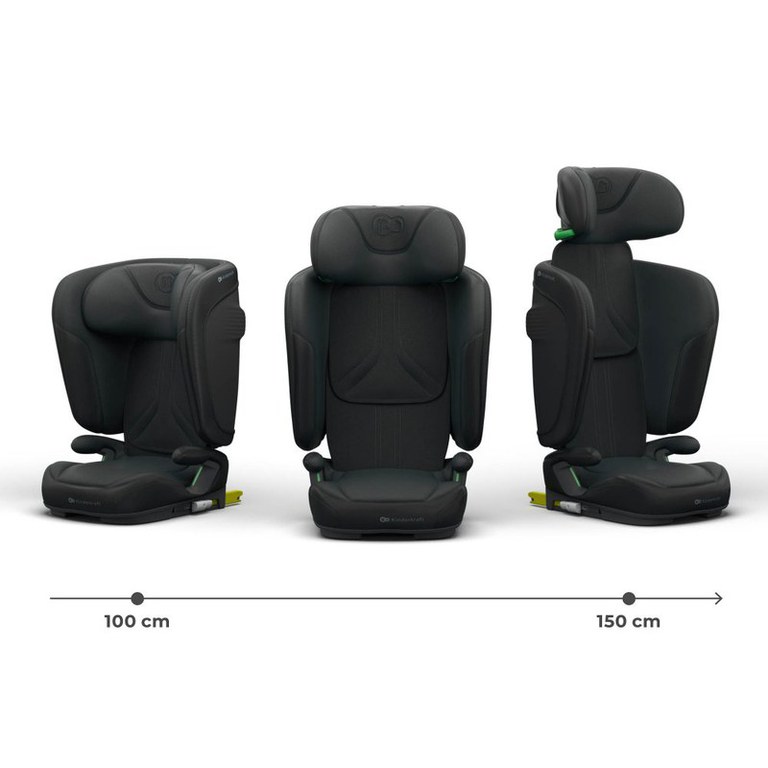 Scaun auto pentru copii Kinderkraft Unity2 Black 100-150 cm, pliabil, i-size, spatar reglabil, tetiera ajustabila