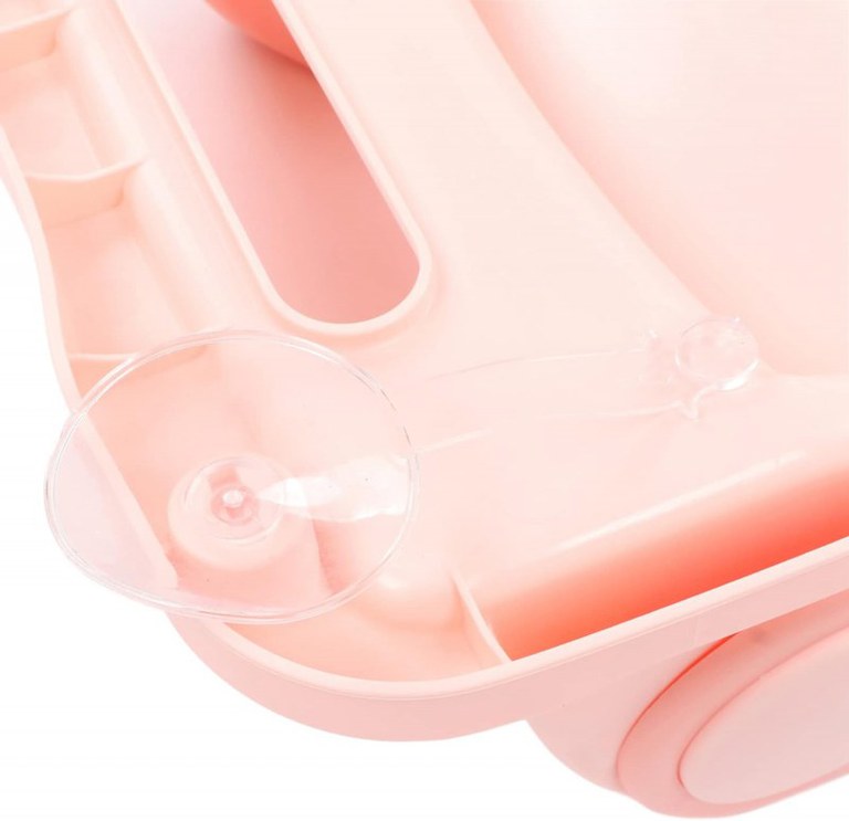 Scaun de baie Little Mom Driver Pink cu volan si spatar reglabil in 3 pozitii, margini rotunjite, fixare cu ventuze, dimensiune 20x40x18 cm, varsta recomandata 6 luni+