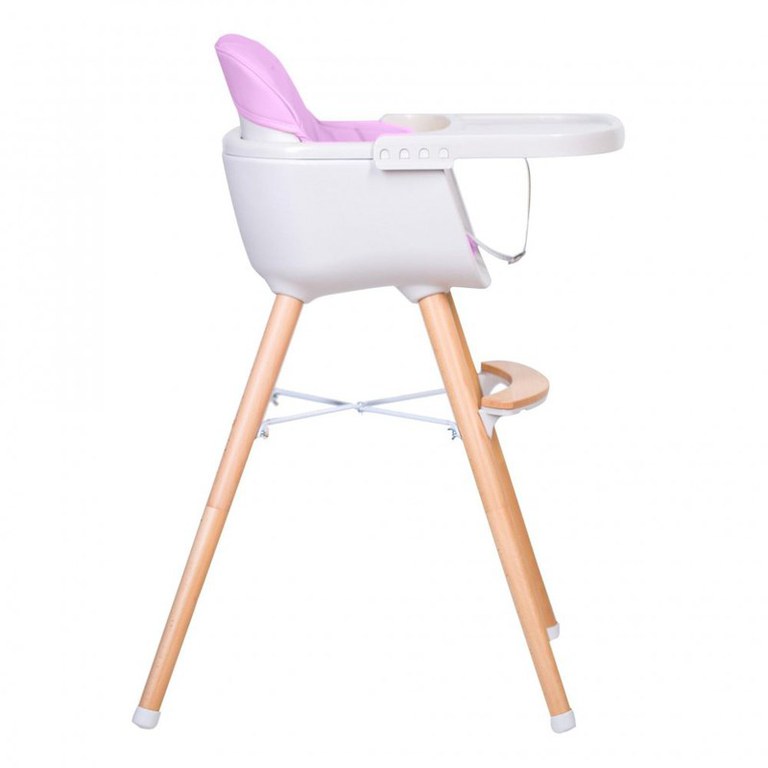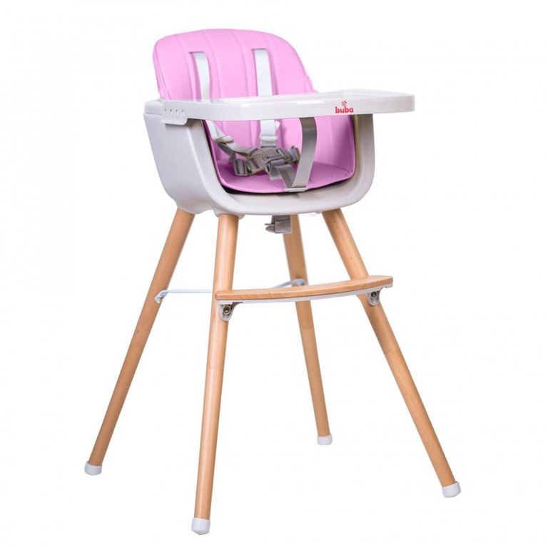 Scaun de masa pentru copii Buba Carino Roz 2 in 1 din lemn de fag, suport pentru picioare, tapiterie din piele ecologica