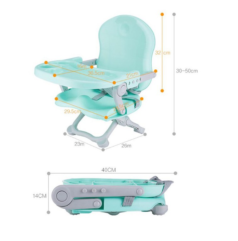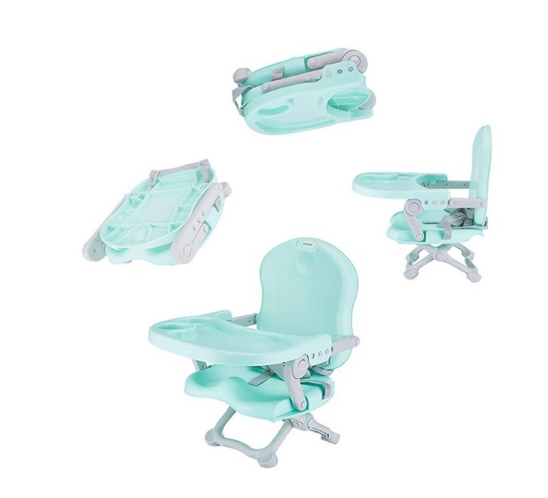 Scaun de masa pentru copii, Little Mom, model tip booster, design compact, pliabil si portabil, inaltime reglabila 4 pozitii, tavita detabila, compatibilitate universala, dimensiune 50 x 30 x 35 cm, Green