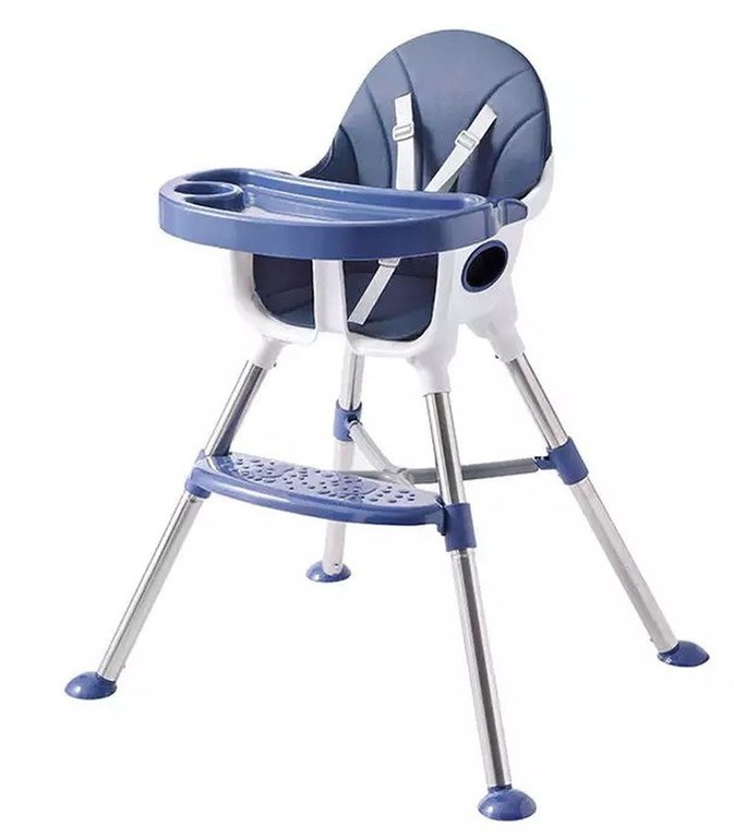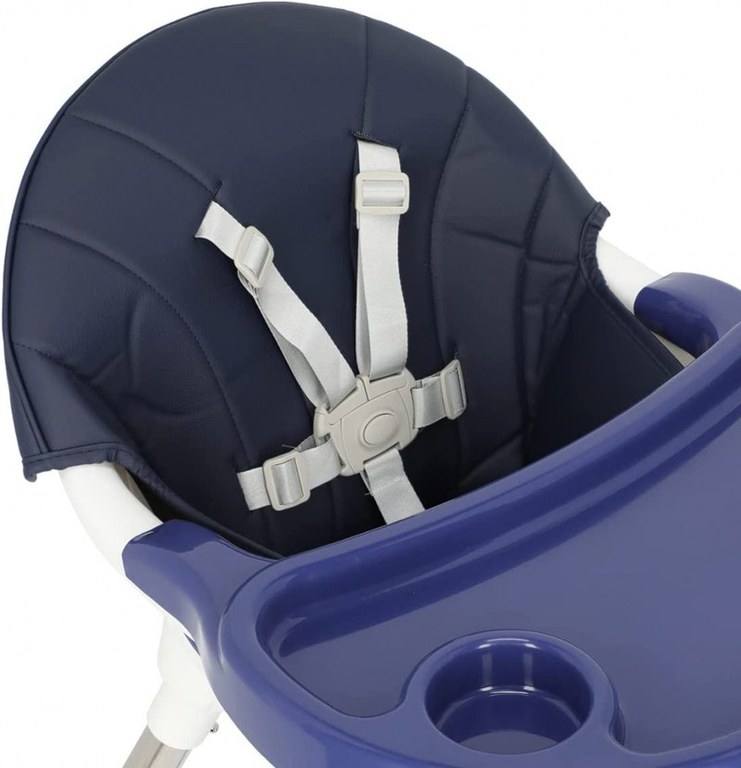 Scaun de masa transformabil Little Mom, multifunctional, cu tavita ajustabila, husa detasabila din piele ecologica, suport pentru picioare, dimensiune 75 x 53 x 83 cm, Elite Blue