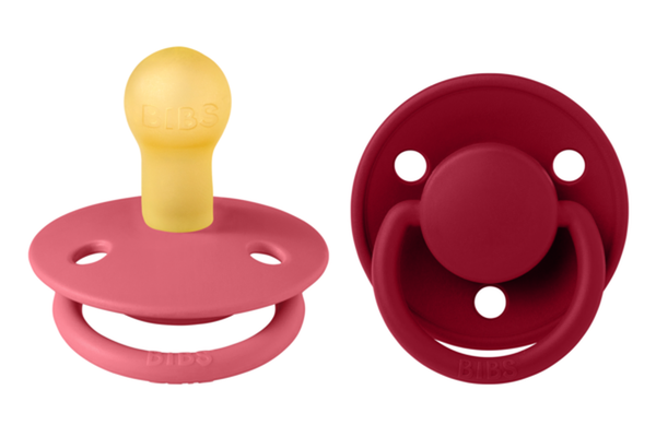 Set 2 suzete Bibs De Lux Latex, tetina rotunda, 0 luni, CoralRuby