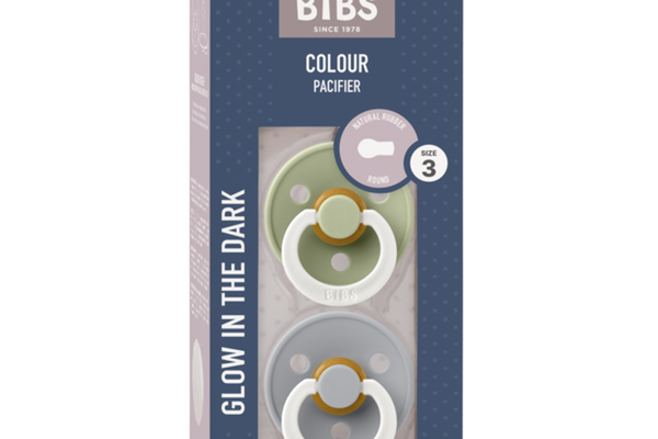 Set 2 suzete Bibs fosforescente Colour Glow Latex, tetina rotunda, 18 luni + SageCloud