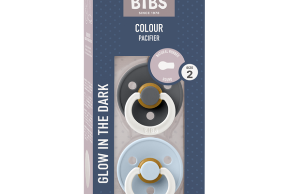Set 2 suzete Bibs fosforescente Colour Glow Latex, tetina rotunda, 6 luni + IronBaby Blue