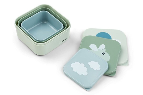 Set 3 caserole pentru gustari Done by Deer Happy Clouds Green este gandit pentru organizarea simpla a pachetelului zilnic.nbspIn nuante green si blue cu print Happy Clouds si motive Deer friends, Set