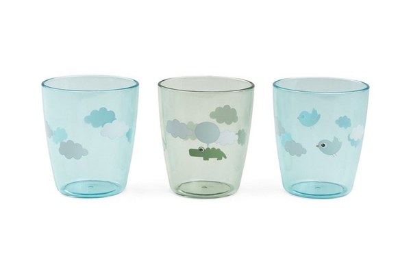 Set 3 pahare Yummy Done by Deer Happy Clouds Green este creat pentru mese distractive si sigure.nbspCu nuante blue si green si print Happy Clouds, Set 3 pahare Yummy Done by Deer Happy Clouds Green ar