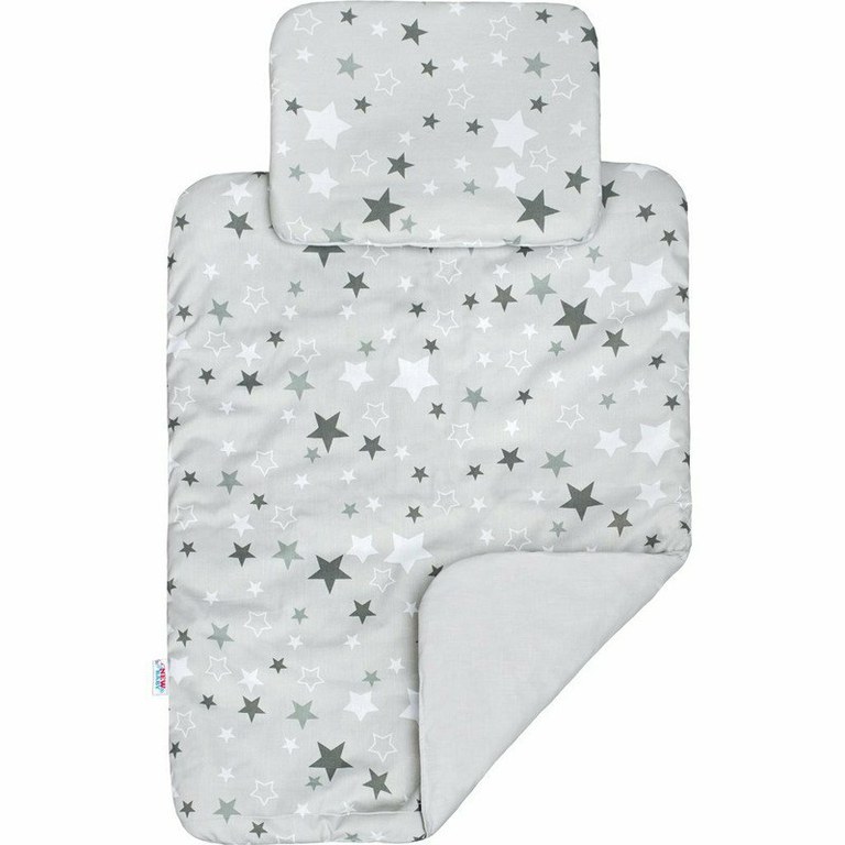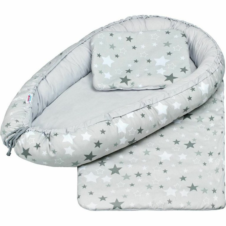 Set 3 piese New Baby Baby Nest cu paturica si pernuta WhiteGrey stars
