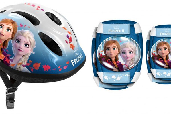 Combo set Disney Frozen pentru copii, destinat vacircrstei de 3-6 ani, include casc de protecie reglabil, genunchiere i cotiere, toate icircn tematica popularului film Frozen. Acest set ofer protecie