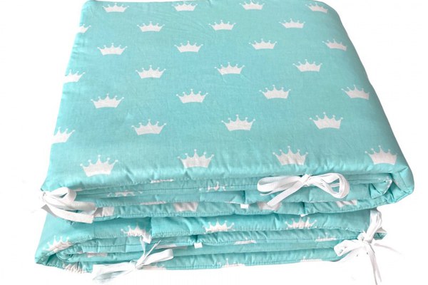 Setul de aparatori pufoase contine 4 aparatori umplute cu vatelina pufoasa, cusuta de jur-imprejur, ce protejeaza copilasul de eventualele lovituri de marginile patului sau de curentii de aer.Setul de