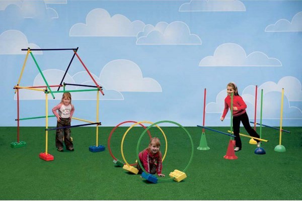 Kit de abilitati motorii pentru a crea trasee cu obstacole de diferite grade de dificultate.Setul include25 bete gimnastica (120 cm lungime)10 caramizi24 clipsuri de prindere3 cercuri plate cu diametr
