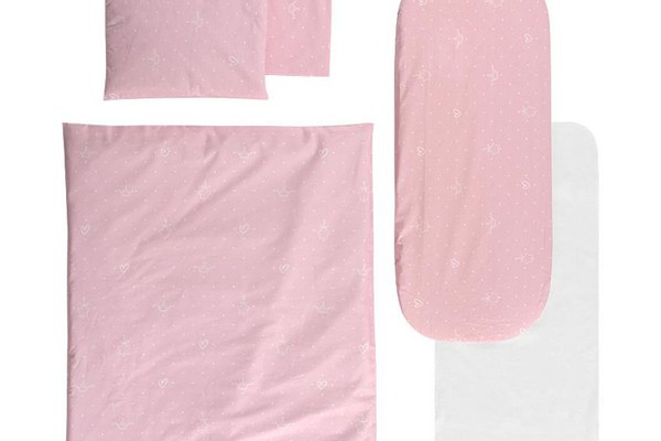 Set lenjerie pentru carucior Lorelli Little Bear Pink cu 6 piese si protectie impermeabila