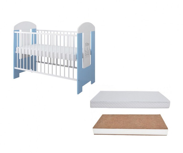 Set Patut din lemn cu inaltime saltea reglabila pe 3 nivele Ptilou Blue Prince + Saltea cocos 10 cm