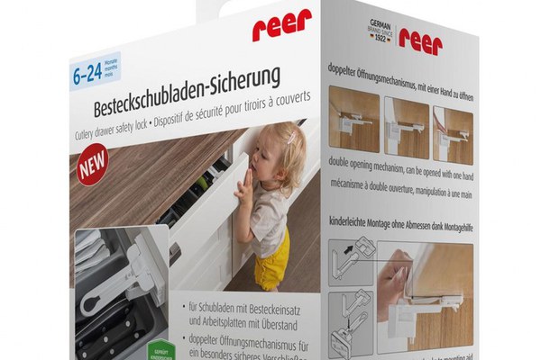 Set sigurante pentru sertare de tacamuri 2 bucati albe montare cu adeziv sau surub Reer 71090