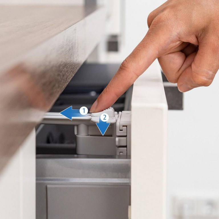 Un sertar prevazut cu sigurante poate fi deschis doar cat o mica crapatura si imediat tija sigurantei se cupleaza in pozitia de blocare. Copilul este impiedicat sa aiba acces la continutul sertarului