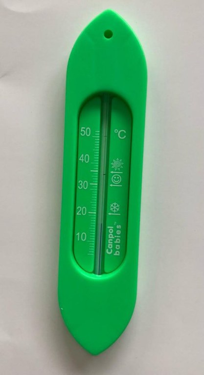 Termometru de baie folosit pentru a masura temperatura apei inainte de a face baie copilului.Este precis, sigur, igienic si usor de citit.Ca senzor de masurare a temperaturii este folosit alcoolul.Tub