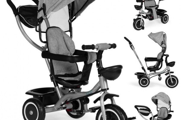 Tricicleta pentru copii Ecotoys WQL-066-52 Gri 2 in 1 cu scaun rotativ 360, roti din spuma EVA, greutate admisa 25kg