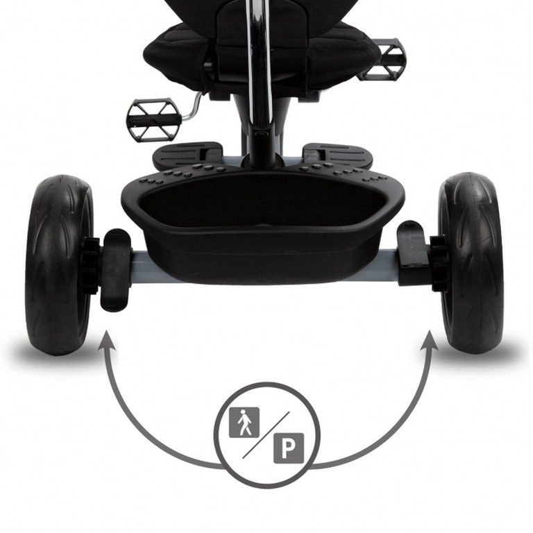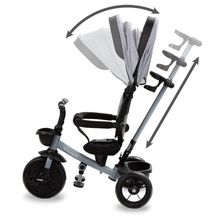 Tricicleta pentru copii Kidwell Axel Gri cu sezut rotativ, roti din spuma EVA, suport pentru picioare, control parental, suport pentru pahar, centura de siguranta, greutate admisa 25 kg