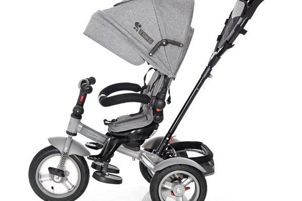 Tricicleta pentru copii Lorelli Neo Air Grey Luxe 4 in 1 multifunctionala, roti mari gonflabile, spatar inalt reglabil, sezut rotativ, 2 tipuri de suport pentru picioare si dispozitiv de franare