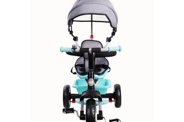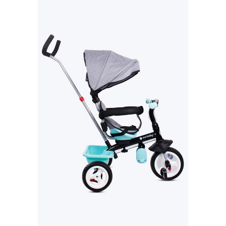Tricicleta pentru copii Sun Baby 017 Fresh Turquoise Grey cu sezut reversibil 360, control al directiei, roti din spuma eva, suport pentru picioare pliabil