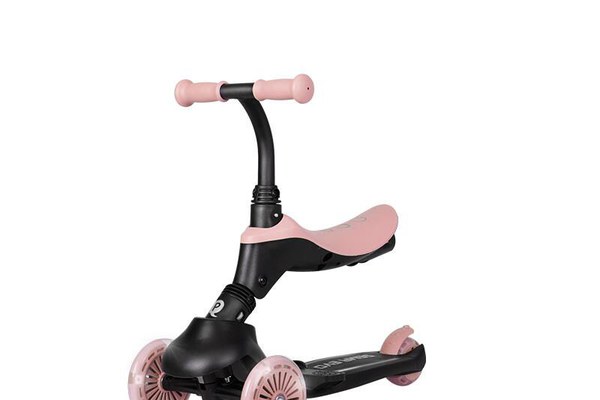 Trotineta pentru copii QPlay Sema EVO Roz 6 in 1 multifunctionala cu scaunel, maner telescopic parental, inaltime ajustabila, cadru din aluminiu, greutate admisa 50 kg
