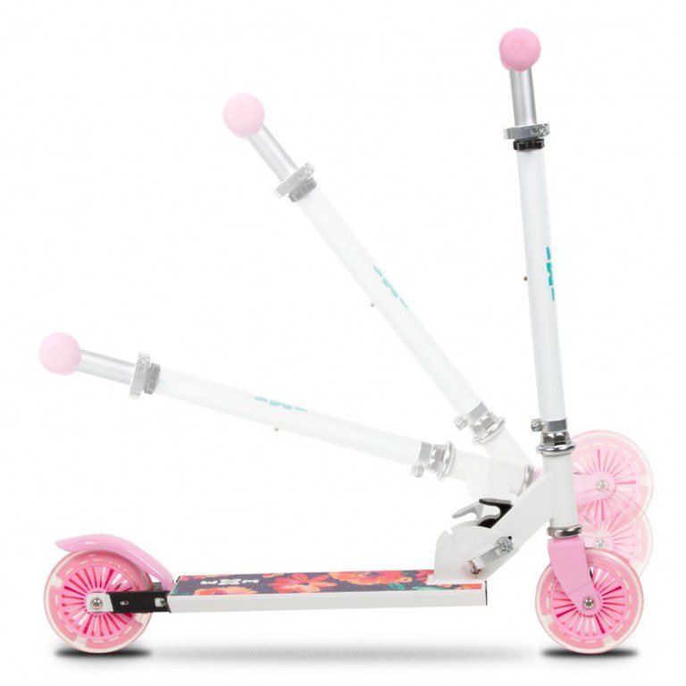 Trotineta WXM Skipo Floral pliabila, din aluminiu, ghidon reglabil, roti Led, greutate admisa 50 kg