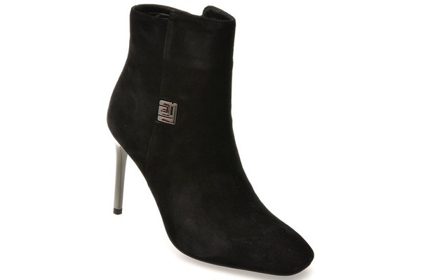 Botine elegante EPICA negre, J30822, din piele intoarsa
