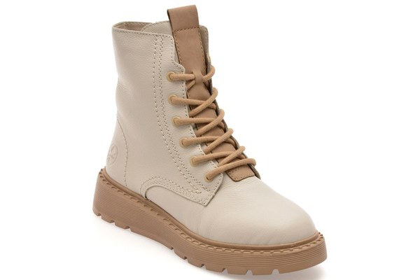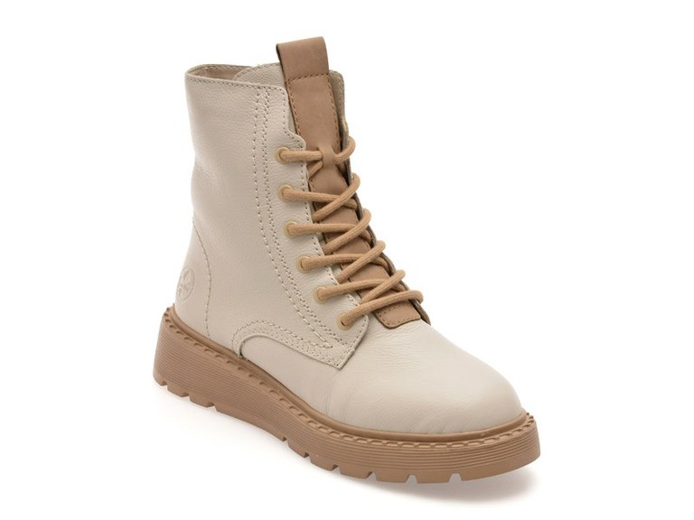 Ghete RIEKER bej, 70404, din piele naturala , Pentru: Femei , Brand: Rieker , culoare: Bej , Material exterior: Piele naturala , Material talpa: Cauciuc termoplastic , Tip inchidere: Siret . Livrare gratuita pentru comenzile de peste 299 RON acasa si in locker. Retur gratuit de acasa sau in locker.