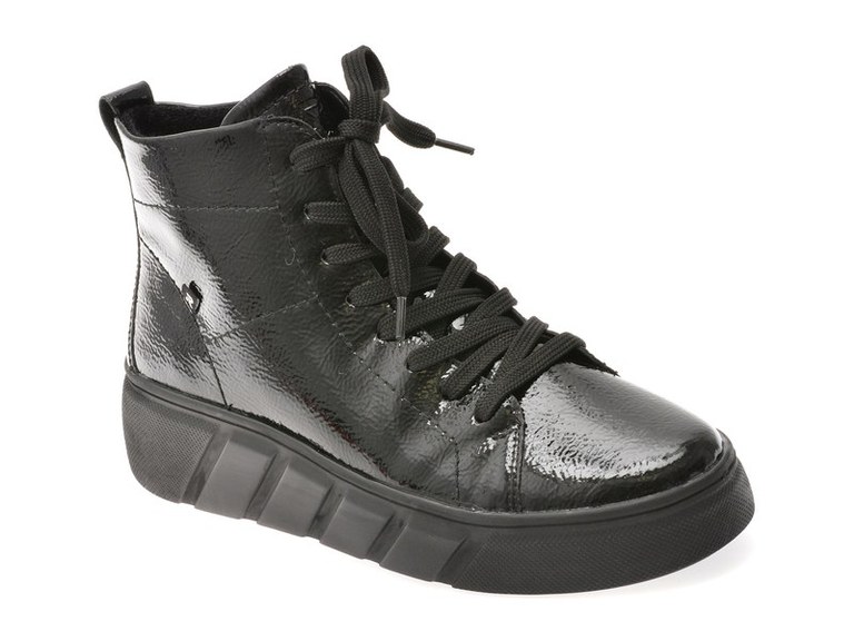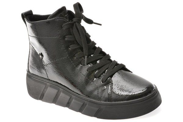 Ghete RIEKER negre, W2661, din piele naturala lacuita , Pentru: Femei , Brand: Rieker , culoare: Negru , Material exterior: Piele naturala lacuita , Material talpa: Cauciuc termoplastic , Tip inchidere: Siret . Livrare gratuita pentru comenzile de peste 299 RON acasa si in locker. Retur gratuit de acasa sau in locker.