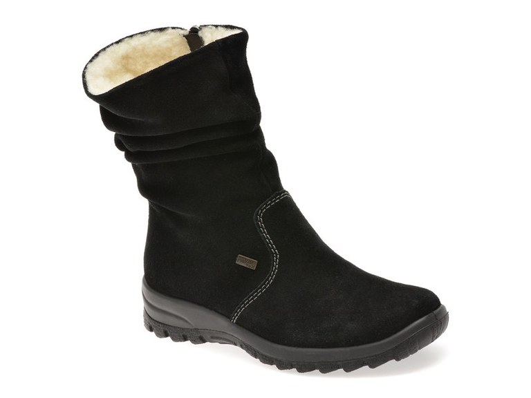 Ghete RIEKER negre, Z7171, din piele intoarsa , Pentru: Femei , Brand: Rieker , culoare: Negru , Material exterior: Piele intoarsa , Material talpa: Cauciuc termoplastic , Tip inchidere: Fermoar . Livrare gratuita pentru comenzile de peste 299 RON acasa si in locker. Retur gratuit de acasa sau in locker.