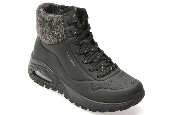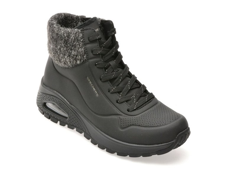 Ghete SKECHERS negre, UNO RUGGED, din piele ecologica , Pentru: Femei , Brand: Skechers , culoare: Negru , Material exterior: Piele ecologica , Material talpa: Cauciuc termoplastic , Tip inchidere: Siret . Livrare gratuita pentru comenzile de peste 299 RON acasa si in locker. Retur gratuit de acasa sau in locker.