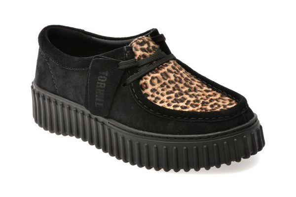 Mocasini CLARKS negri, TORHILL BEE, din piele intoarsa