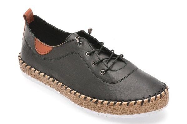 Pantofi EVIDA negri, EVHT301, din piele naturala , Pentru: Femei , Brand: EVIDA , culoare: Negru , Material exterior: Piele naturala , Material talpa: Cauciuc termoplastic , Tip inchidere: Siret . Livrare gratuita pentru comenzile de peste 299 RON acasa si in locker. Retur gratuit de acasa sau in locker.