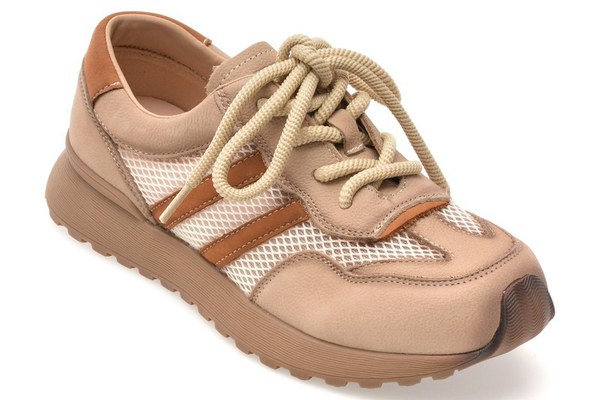 Pantofii sport FLAVIA PASSINI bej, din material textil si piele naturala, reprezinta alegerea ideala pentru femeile active care apreciaza incaltamintea confortabila si moderna. Acest model, creat special pentru categoria pantofi sport de dama, imbina eleganta tonurilor neutre cu functionalitatea materialelor premium. Pantofii sunt potriviti pentru purtare zilnica, oferind atat versatilitate, cat si comoditate in orice context urban. Interiorul moale si sustinerea anatomica asigura confort prelungit la fiecare pas. Constructia rezistenta cu piele naturala si material textil mentine aspectul impecabil in timp. Talpa din cauciuc termoplastic sporeste aderenta si stabilitatea pe diverse suprafete urbane. Detaliile functionale ofera libertate de miscare si flexibilitate adaptata stilului dinamic de viata. Pentru un look modern la birou, asorteaza-i cu pantaloni office si o camasa lejera. In stil casual de weekend sau plimbari in oras, incalta-i cu jeans si tricou, obtinand o tinuta confortabila si aerisita. Pantofii completeaza perfect bagajul pentru calatorii in care se cere atat stil cat si functionalitate. Alege acest model datorita confortului asigurat de materiale naturale si durabilitatii oferite de talpa inovatoare. Se potrivesc oricarei garderobe si aduc un plus de rafinament oricarei tinute urbana.