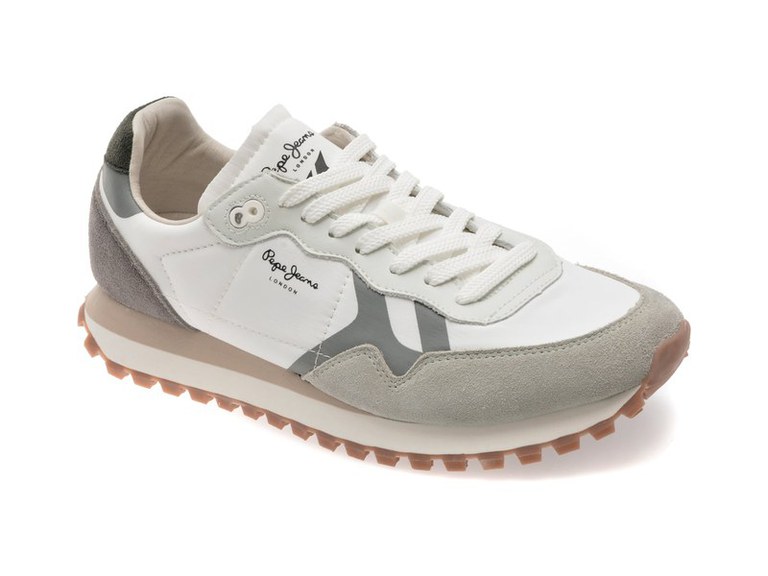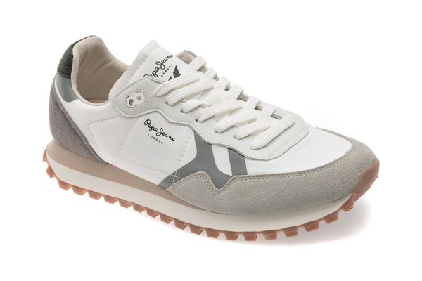 Pantofi sport PEPE JEANS albi, BRIT-ON MASTER, din material textil