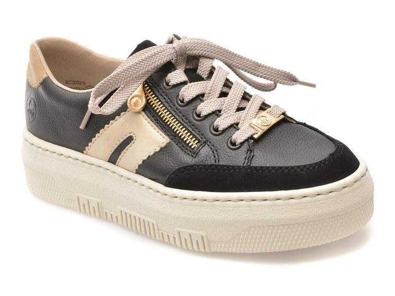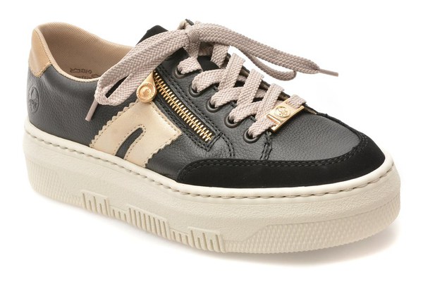 Pantofi sport RIEKER negri, M1912, din piele naturala , Pentru: Femei , Brand: Rieker , culoare: Negru , Material exterior: Piele naturala , Material talpa: Cauciuc termoplastic , Tip inchidere: Siret . Livrare gratuita pentru comenzile de peste 299 RON acasa si in locker. Retur gratuit de acasa sau in locker.