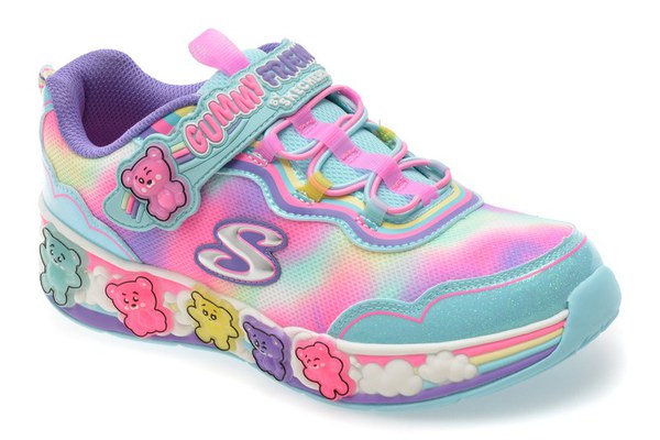 Pantofi sport SKECHERS albastri, GUMMY FRIENDS, din material textil , Pentru: Fetite , Brand: Skechers , culoare: Albastru , Material exterior: Material textil , Material talpa: Cauciuc termoplastic , Tip inchidere: Velcro . Livrare gratuita pentru comenzile de peste 299 RON acasa si in locker. Retur gratuit de acasa sau in locker.
